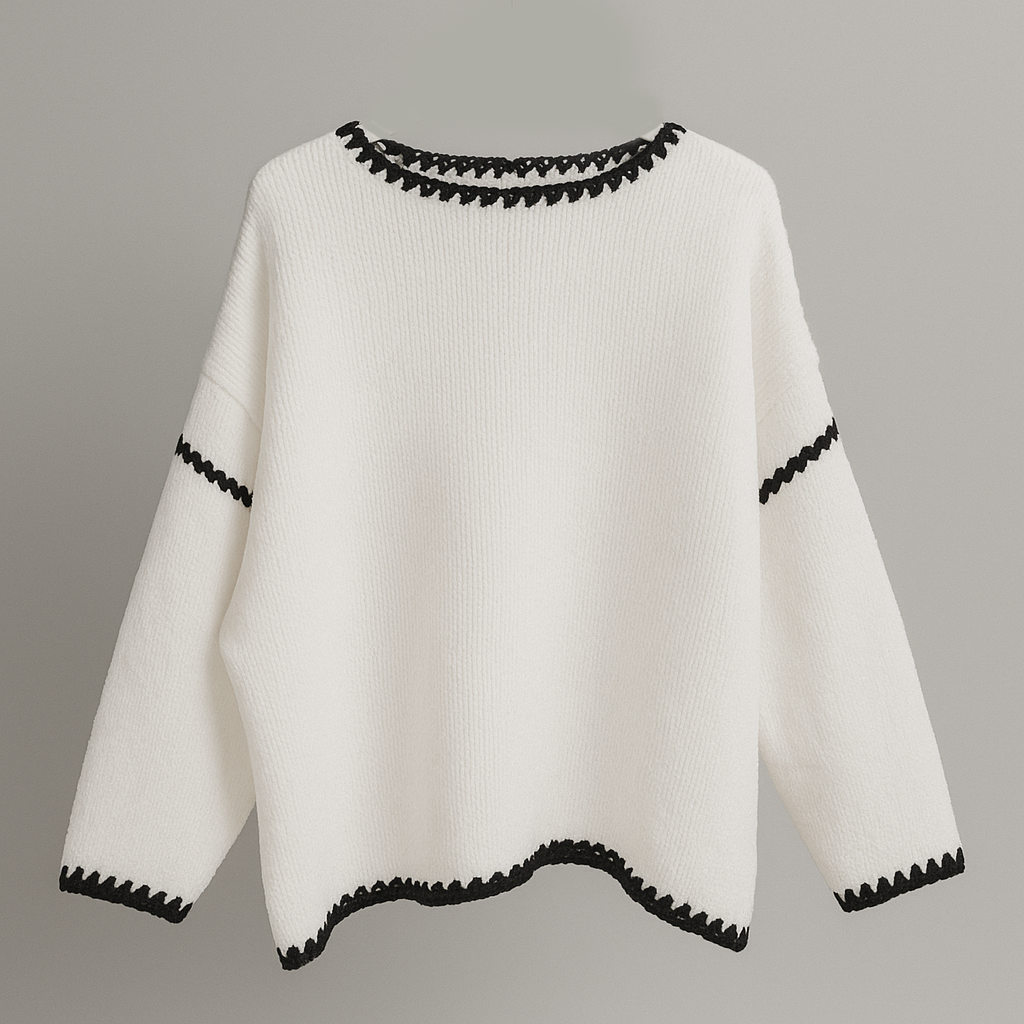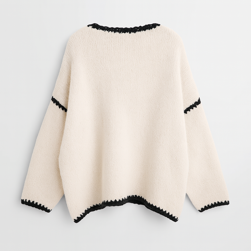 De ontspannen snit met licht verlaagde schouders garandeert bewegingsvrijheid en een moderne uitstraling, terwijl de fijne, contrasterende crèmekleurige rand een stijlvolle accent toevoegt. Een veelzijdige must-have die zowel met jeans als rokken harmonieert en altijd een elegante casual uitstraling heeft.
