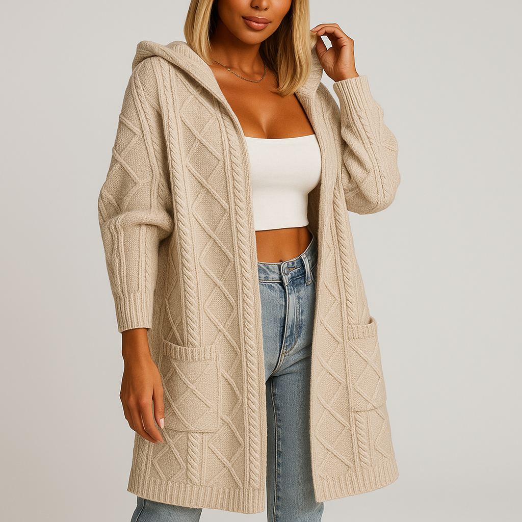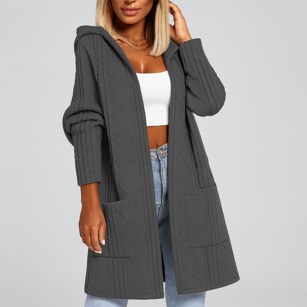 Asha | Lange cardigan met capuchon en kabelgebreid patroon
