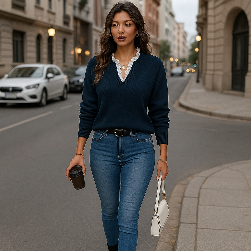 De Emile gebreide trui met kant – jouw nieuwe favoriete stuk voor vrouwelijke elegantie en gezellige warmte. Zacht, stijlvol & gewoon onweerstaanbaar.